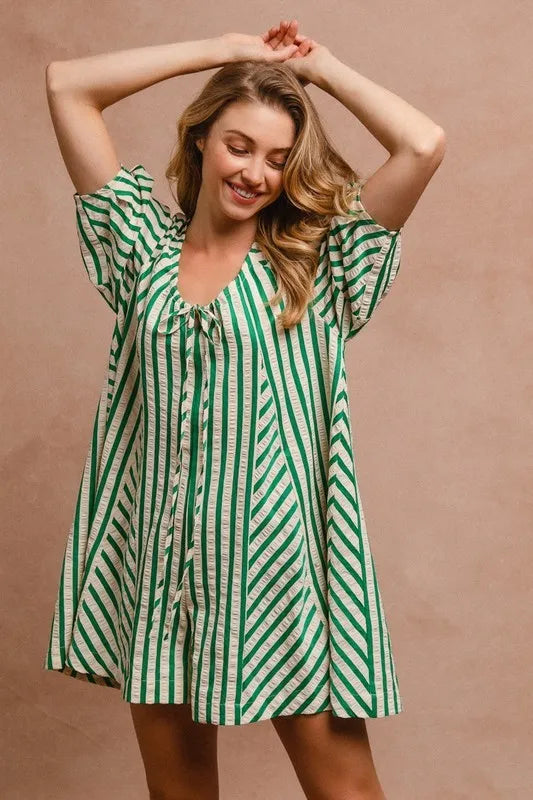 BiBi Smocked Off Shoulder Striped Dress