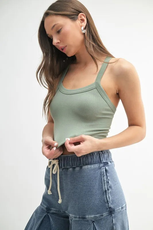 Zenana Washed Ribbed Seamless Crop Tank with Bra Pad