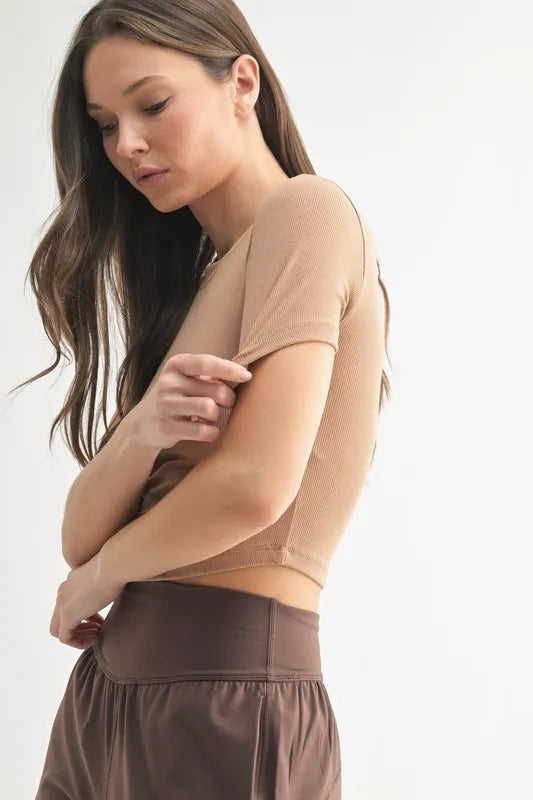 MONO B Essential Micro-ribbed Cropped Athleisure Tee